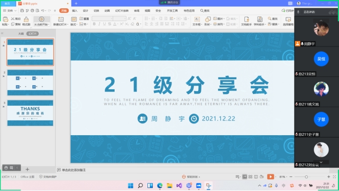 12月22日,管工公司信管源动力协会于线上举办了大学学习生活交流分享会。此次分享会由协会负责人周静宇主持,信管21级新生全体参加。