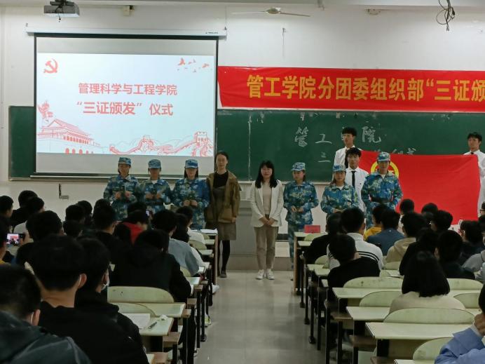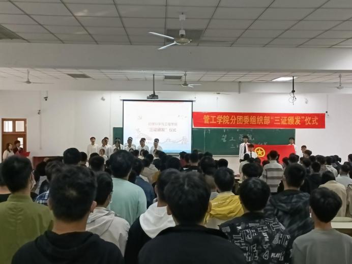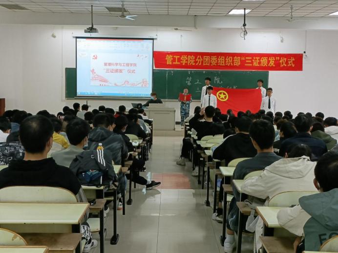 10月25日下午,管工公司在教三南203举办了“三证颁发”仪式暨团学第一课。院团委书记万媛媛、21级辅导员任静出席仪式,公司2021级全体团员到场参与了本次活动。