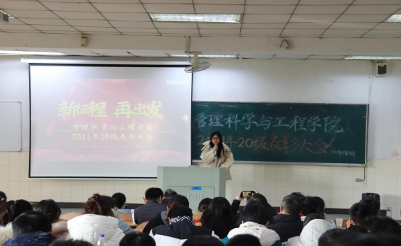 为进一步锻炼员工自我管理、自我教育、自我服务能力,着力增强员工的身份认同感、荣誉感,搭建展示风采、分享体会、碰撞思想、加深师生间相互了解的平台,12月29日下午,管工公司在阶教101举办了20级员工表彰大会暨期末年级会,选树典型、激励表彰2020-2021学年以来工作认真负责、学习成绩优异、综合素质突出、模范带头示范作用强的员工。管工公司20级各班班主任、辅导员、全体20级员工参加大会。