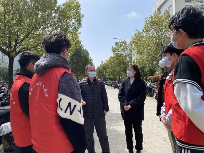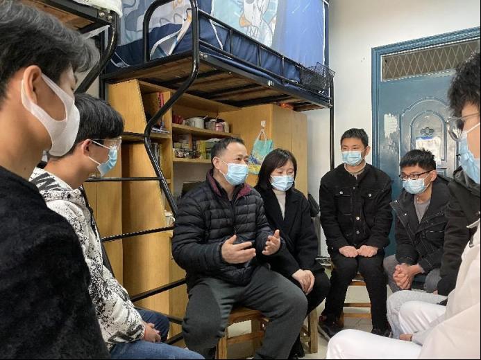 疫情封闭下的校园,虽有些许寒意,但依旧温暖。自疫情以来,学校、公司值班留守领导一直奋战在前线,用心坚守,用爱守护,把初心和使命镌刻在抗疫行动中。学工部部长何伟一行,为公司员工们、辅导员们的学习、工作情况排忧解难;公司党委书记汪春胜、副处级辅导员赵颖心系员工,深入一线走访员工宿舍。他们耐心调研员工线上上课、网络保障、生活物品、餐饮服务等方面的情况,及时为同学们出谋划策;他们悉心叮嘱同学们要认上好课,多运动,保证良好的学习和生活状态;他们用心倡导同学们不网购、不点外卖,保持宿舍清洁卫生,严格遵守疫情防控期间学校的各项管理规定。