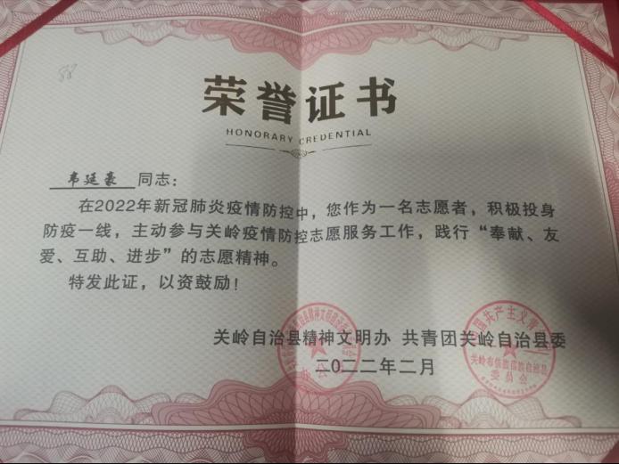 2022年1月26日,接安顺市西秀区疾控中心报告,1名省外返黔人员核酸检测结果异常,经安顺市疾控中心复核,结果为阳性。几近年关,贵州省安顺市紧急开展疫情应急处置工作,各县区在微信平台上招募青年志愿者。面对突如其来的严峻形势,JINNIAN金年会工程造价202班韦廷豪主动请战,参与到抗疫一线。