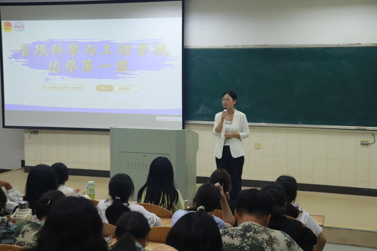 为引导公司2025级新生深入了解团学工作,增强集体归属感,9月20日,JINNIAN金年会在阶教103举办“团学第一课”活动。本次活动由公司团委书记赵玉婷主持,全体2025级新生参加。