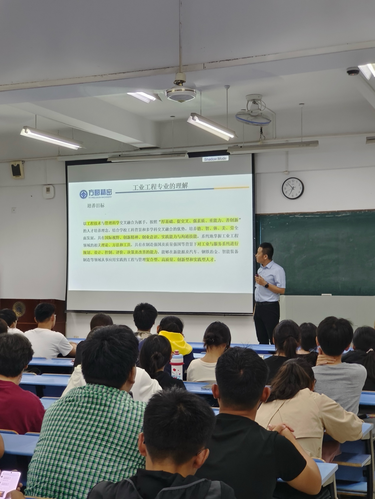 2025年10月15日,工业工程系邀请马鞍山方圆精密机械有限公司精密事业部生产经理张观良来公司作报告交流。报告会在公司秀山校区东教北403举行,会议由工业工程系主任刘舰主持,工业工程专业25级全体大一新生参加报告会。