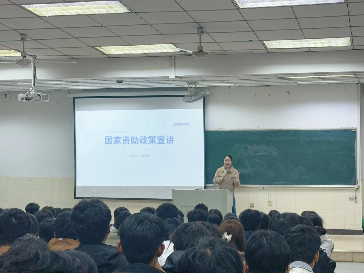 为助力学子无忧求学,JINNIAN金年会于10月22日在秀山校区阶教201举办“国家资助政策宣讲会”,由新生辅导员任静主讲,全体2025级新生参加。
