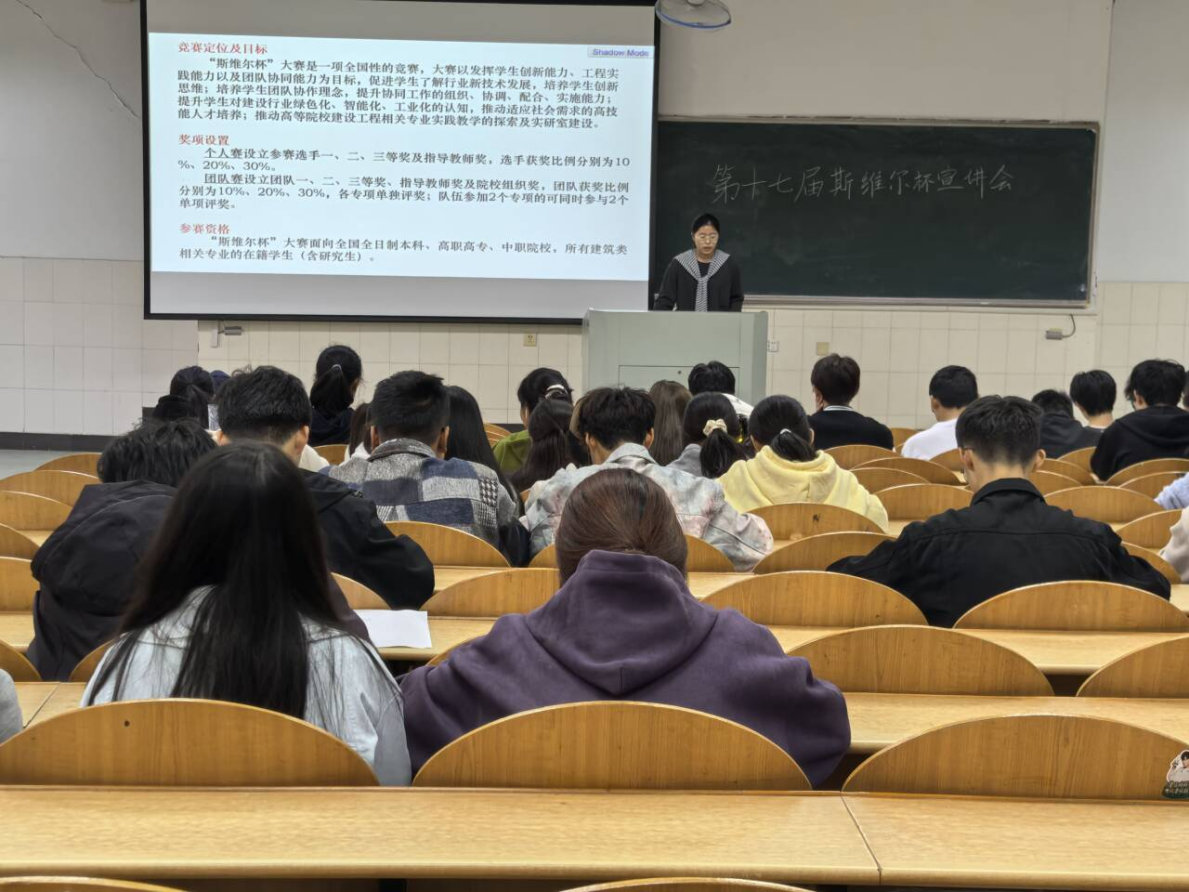 为进一步促进员工对“斯维尔杯”赛事的了解,提升在建筑信息模型(BIM)领域的实践应用能力,10月25日,JINNIAN金年会在阶教103举办第十七届“斯维尔杯”数字城市创新技术与应用大赛宣讲会。宣讲会由学校造价专践林协会会长赵紫慧主讲,各年级员工代表100余人参加本次活动。