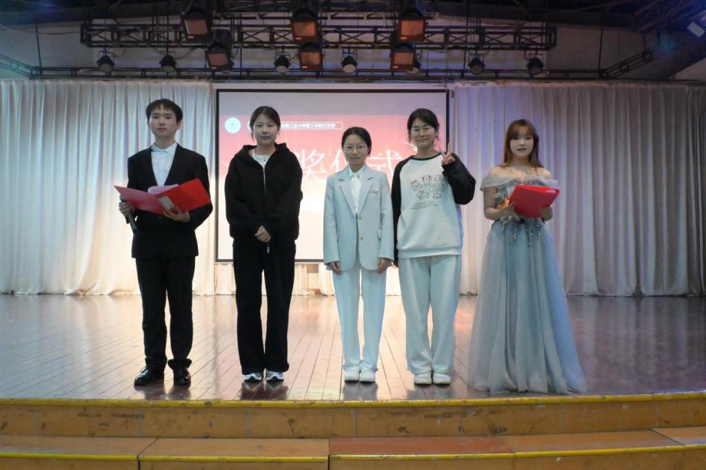 大赛以“发掘主持潜能,展现青春风采”为主线,设置自我介绍、主题主持与事故主持三大环节,全面考察新生的综合素养。在自我介绍环节,参赛选手以多样化形式展现个性,活跃现场氛围。主题主持环节聚焦校园生活与青春成长话题,选手们表达流畅、逻辑清晰,展现出良好的语言功底。事故主持环节通过模拟设备故障、嘉宾变动等突发情境,检验选手的应急处理能力,多位选手沉着应对、灵活控场,表现出色,赢得现场观众阵阵掌声。经过三轮激烈角逐,十名新生凭借扎实的语言功底与出众的舞台表现脱颖而出。其中,肖文玉荣获一等奖;周婷玉、宁鹏飞、郑心仁获二等奖;洪雅慧、李博文等六名同学获三等奖。