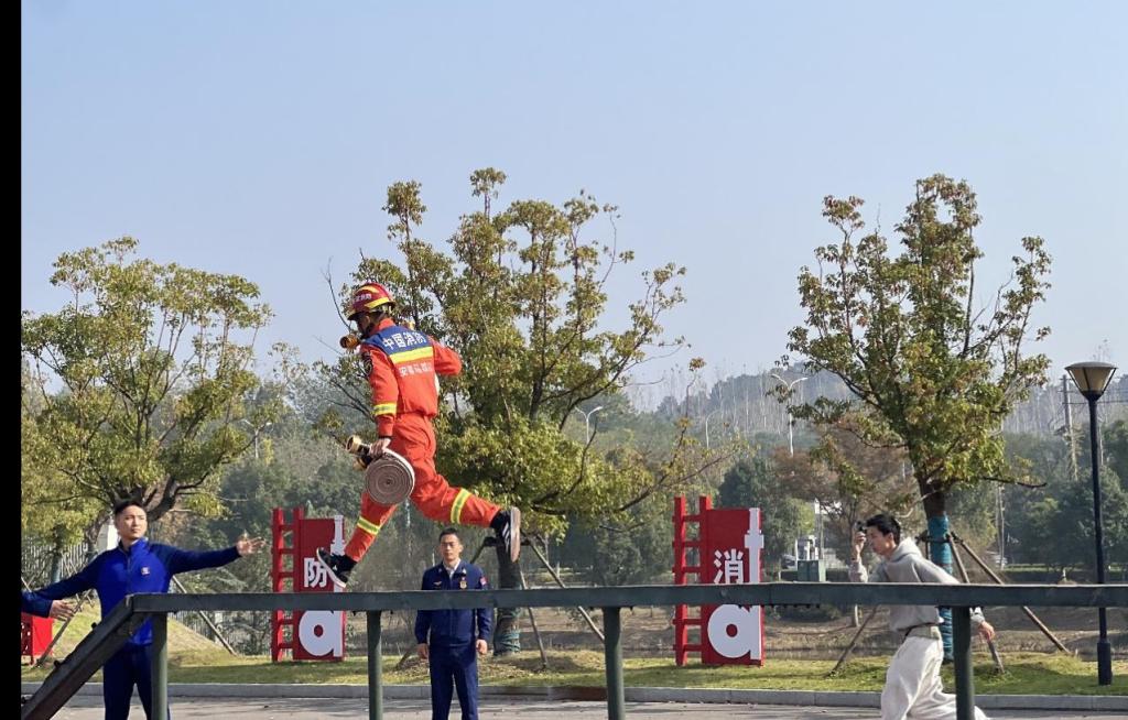 活动中,消防员代表围绕“全民消防,生命至上”主题,就宿舍安全用电、实验室灭火器使用等校园常见隐患进行了专项讲解;结合高空救援,消防员们展示了绳索攀爬、挂钩梯攀登等日常训练项目,精湛技艺瞬间点燃现场氛围,多名学子踊跃参与互动,亲身体验消防训练的强度与不易;最后,员工们有序参观了各类消防车辆与专业器材,详细了解其功能用途,并通过亲身穿戴厚重消防战斗服,切身感受了消防员所肩负的沉重责任与使命。