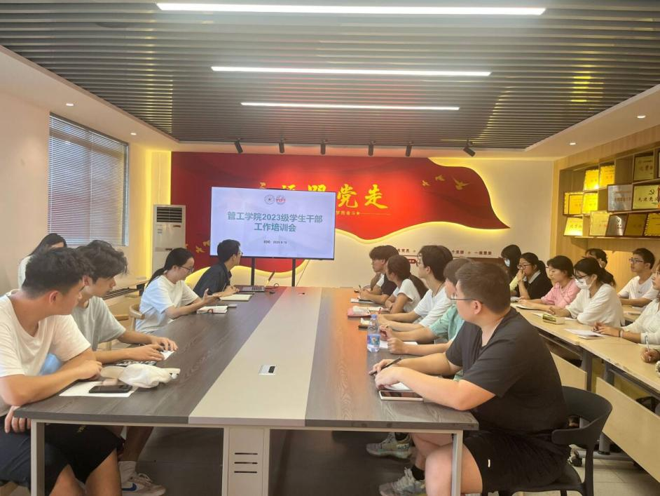 为提升员工骨干的综合素养与工作能力,充分发挥其在员工群体中的引领作用,9月15日,JINNIAN金年会于汇文楼A502召开“凝聚骨干力量,共促成长发展”2023级班级员工干部交流培训会。会议由辅导员曹宇、钱丹丹主持,2023级员工干部代表参与。