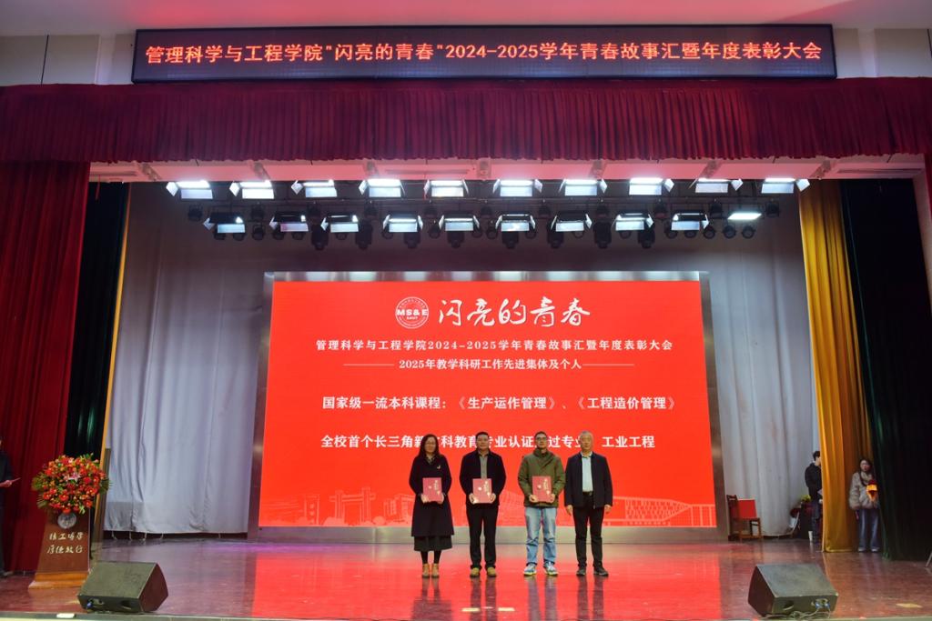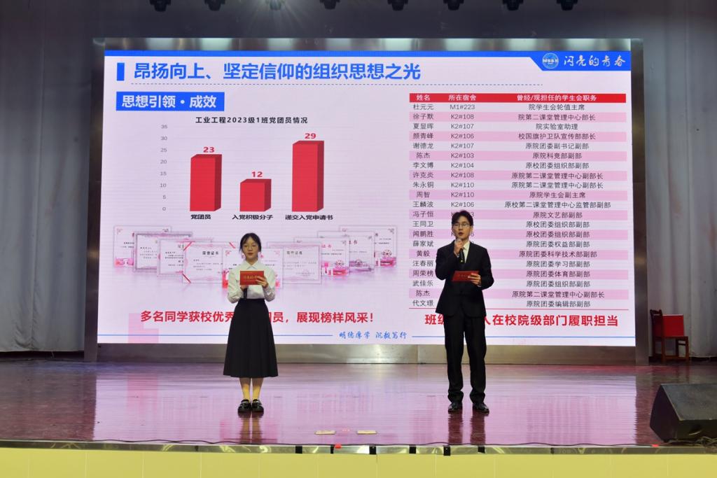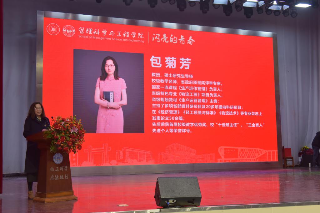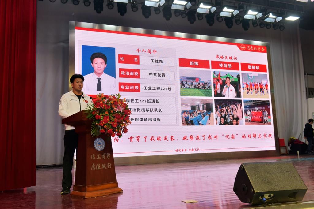 在青春故事篇章,校“十佳班级”工业工程231班员工代表杜元元、周荣榜分享了班级凝心聚力、锤炼本领的建设历程;优秀推免生代表工程造价222班台昌俊分享了自己获第十九届“挑战杯”国赛三等奖的故事,回顾了以厚学回应时代所需、以实践锻造综合素养的成长心路;省老员工体育舞蹈比赛二等奖获得者信息管理与信息系统223班汪竟彤讲述了一个体育舞蹈生从0到1的突破之路;全国老员工橄榄球赛第六名公司橄榄球队队长工业工程222班王胜尧分享了在班级、体育部与橄榄球队之间勇担责任、坚持所爱的团队故事;教师代表包菊芳以“情怀与坚守”为主题,分享了从教40年以来的感悟与初心。