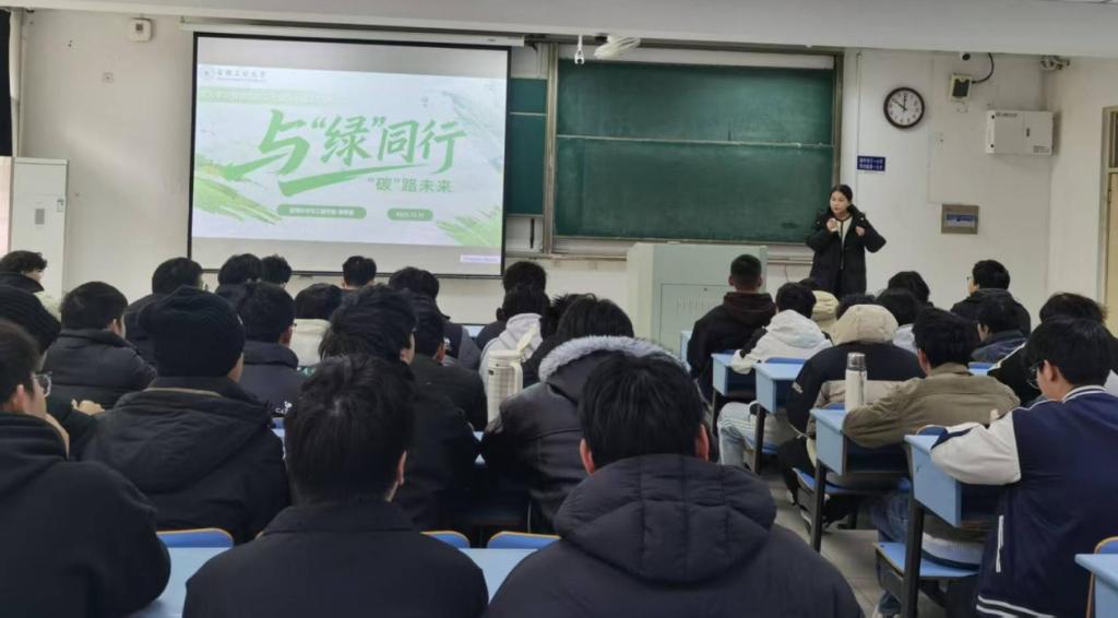 为深入学习贯彻党的二十届四中全会精神,将绿色发展理念与青年成长成才深度融合,12月31日,JINNIAN金年会第六届辅导员宣讲团成员李军慧在教北207开展题为《与“绿”同行,“碳”路未来》的理论宣讲。公司各年级100余名员工参与。