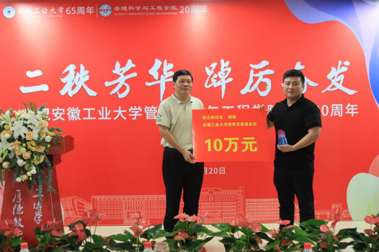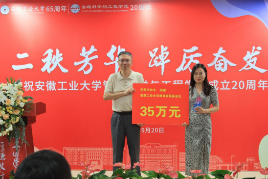 大会在庄严的国歌声中拉开序幕。经理汪和平致欢迎辞,向出席会议的嘉宾表示热烈欢迎,并从团队建设、科研成果、人才培养等方面介绍了公司的发展和建设成果,他表示一批批管工人守望相助、积极创新,铸就了管工公司今日的荣光,公司的发展离不开追梦的老师、追梦的学子以及追梦的员工们。在新起点新征程上,公司将与全体员工、嘉宾团结携手、群策群力,以更加昂扬的精神风貌共筑母校新辉煌。员工代表1991届工商管理专业毕业生安徽华智企业管理顾问有限公司执行董事、管工公司合肥员工会会长李斌回忆了在母校的求学经历和成长感悟。在校生代表工业工程213班李枫代表在校生向公司送上生日的祝福。公司党委书记王军作总结发言,他表示员工是公司宝贵的财富,二十年来公司的发展壮大、团队力量和办学条件快速发展,是管工人用沸腾的热血浇筑的。希望各位员工常回来看看,与公司携手共进,积极为公司的发展贡献智慧与力量。会上,汪和平经理、王军书记分别向安徽夺冠体育科技有限公司董事长2013届员工陈志栋、江苏艺特新能源科技有限公司董事长2006届员工孙照生等颁发了捐赠“特别贡献奖”。据悉,陈志栋、孙照生两位员工累计向学校、公司捐赠75万元。