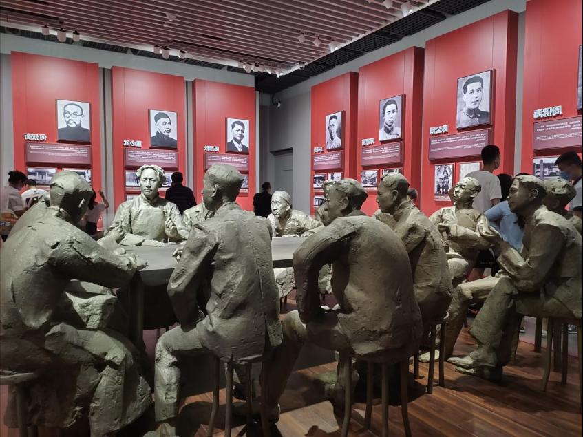 图为中共一大成员开会场景雕塑。