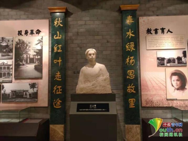 图为革命烈士纪念馆内江上青雕塑。中国青年网通讯员方明娟摄