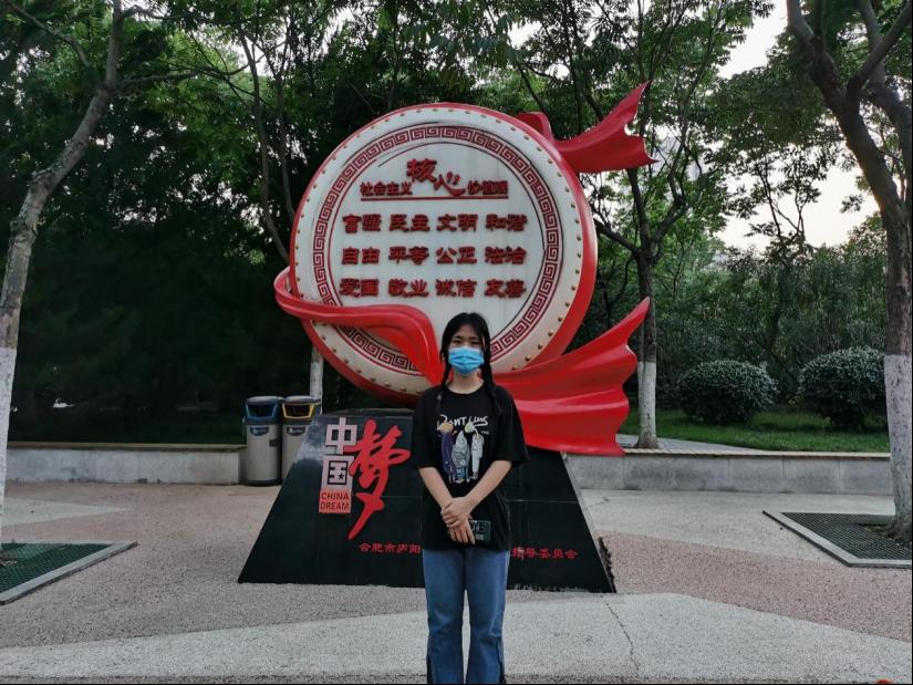 图为实践队员在杏花公园内合影。