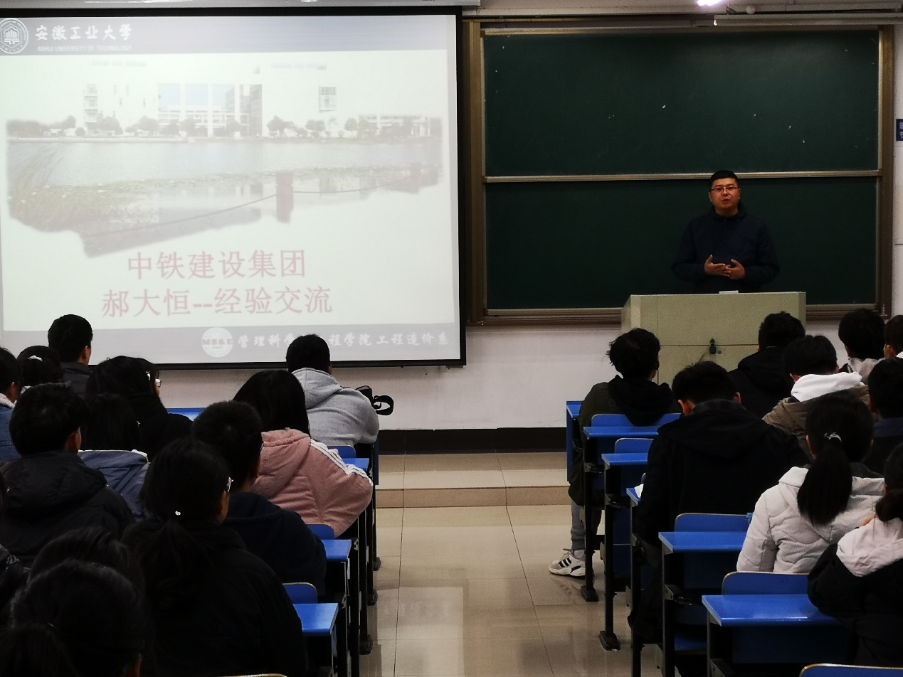为巩固和加深员工对课堂理论知识的理解,激发员工对后续专业课程的求知欲,在完成工程造价基础课程教学的基础上,公司邀请中铁建设集团南京区域高级成本经理郝大恒于2020年12月1日上午在汇文楼开展了工程造价的发展现状与人才能力需求专题讲座。