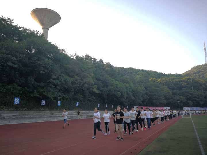 9月9日清晨,管工公司组织全体大一新生在本部操场进行大学第一跑,18级辅导员赵玉婷、各班级班助到场指导。