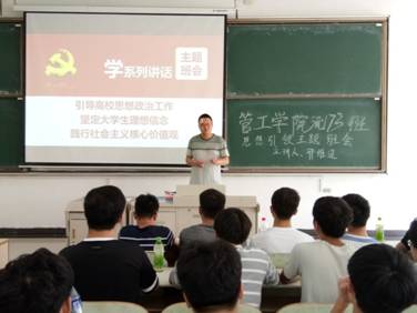 为使同学们更加深刻地理解习近平讲话内容,5月14日中午,流173班于教三南201开展“学系列讲话”思想引领主题班会,17级辅导员邢维迢主讲,流173班全体成员参与。